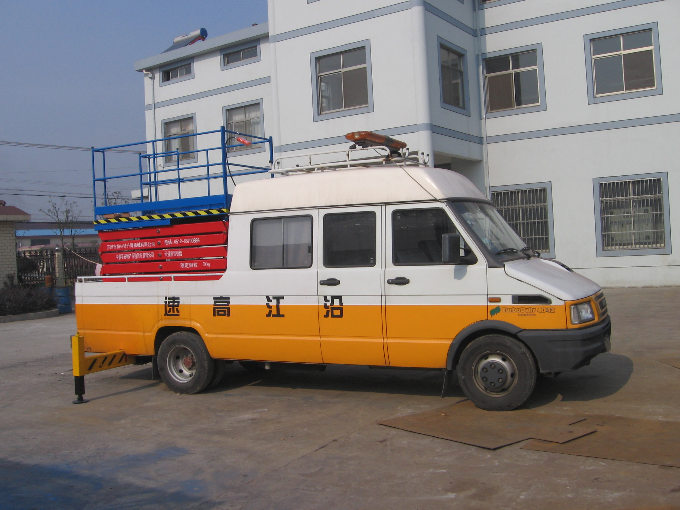 車載式高空作業(yè)臺是由升降臺與電瓶車或汽車配套改裝的高空作業(yè)設備。升降臺利用車輛的直流電或引擎動力驅動升降。